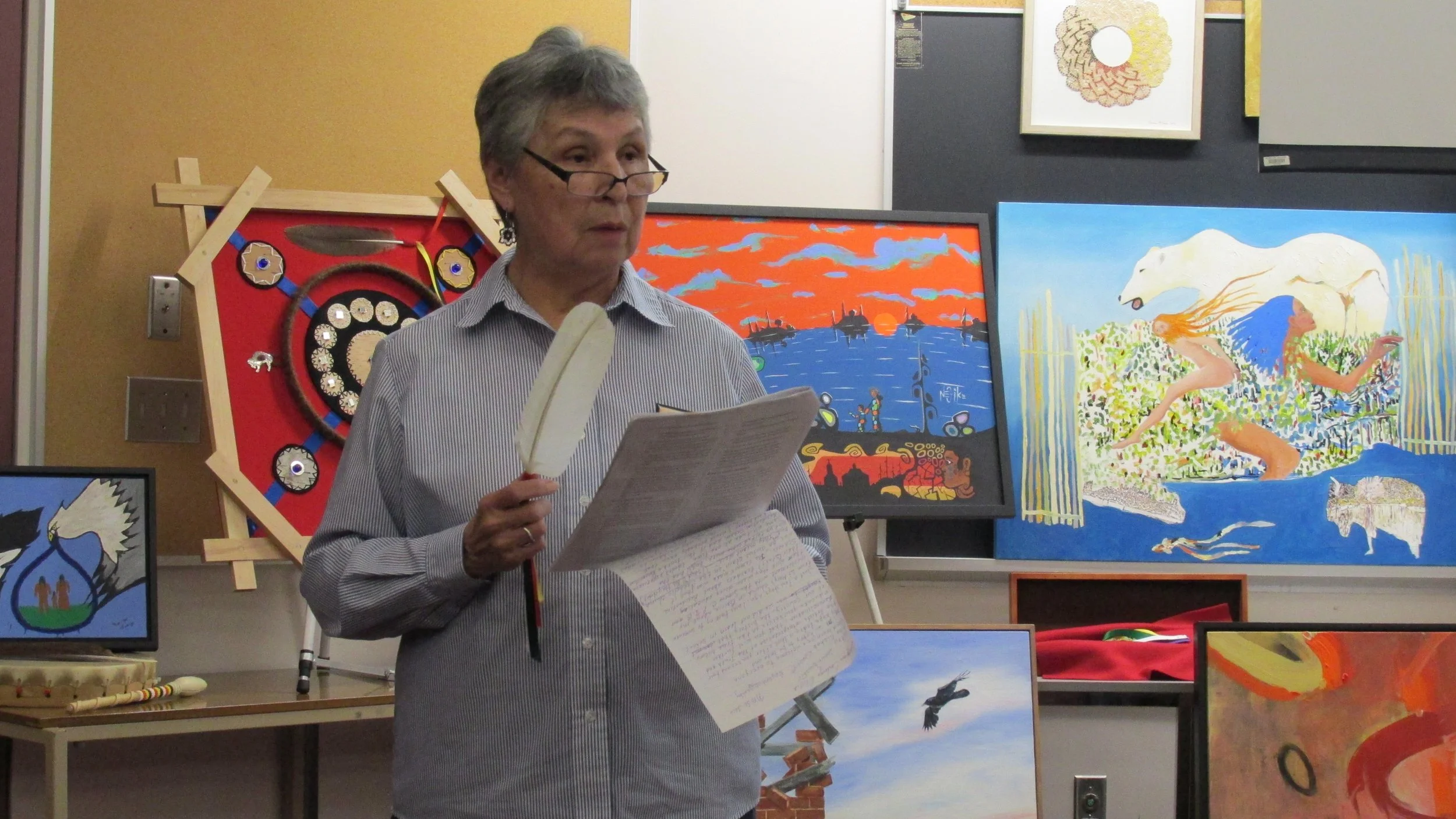 Ernestine Baldwin speaking at Georgian College Call To Action 83 Exhibit.